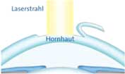 aufgeklappt. Mit dem Laser werden dann die tiefen Hornhautschichten bestrahlt,